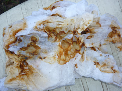 After our last 2QAQ meeting (or 2quack as its lovingly called-our qld art quilters group). Ali had run a soywax and rusting day and I put my salt soaked white open muslin in a bag and left it while ai was away in Perth.